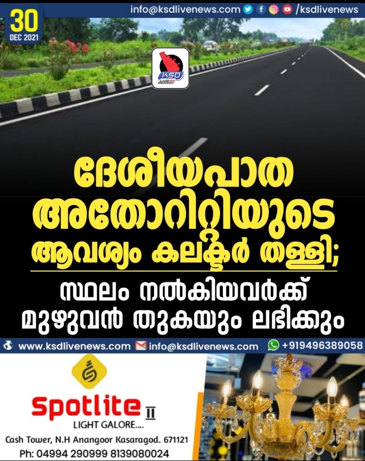 ദേശീയപാത അതോറിറ്റിയുടെ ആവശ്യം കലക്ടർ തള്ളി; സ്ഥലം നൽകിയവർക്ക് മുഴുവൻ തുകയും ലഭിക്കും