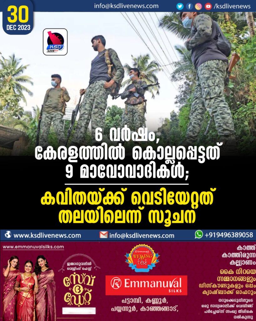 6 വര്‍ഷം, കേരളത്തില്‍ കൊല്ലപ്പെട്ടത് 9 മാവോവാദികള്‍; കവിതയ്ക്ക് വെടിയേറ്റത് തലയിലെന്ന് സൂചന