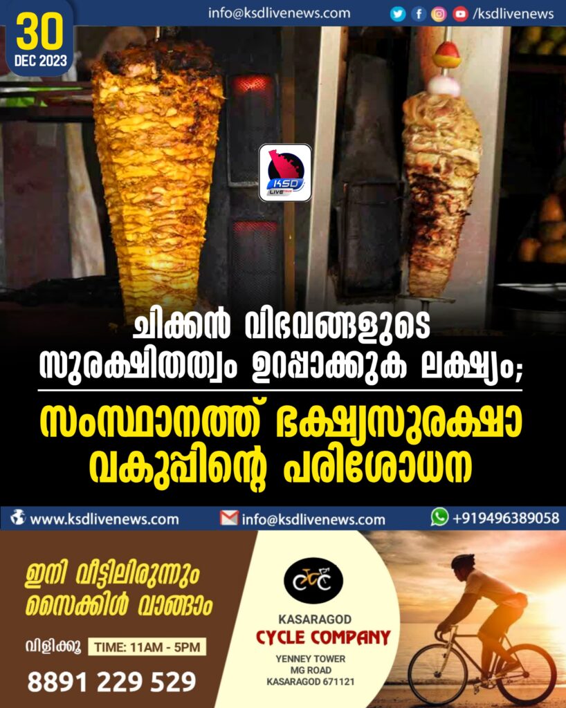 ചിക്കൻ വിഭവങ്ങളുടെ സുരക്ഷിതത്വം ഉറപ്പാക്കുക ലക്ഷ്യം;സംസ്ഥാനത്ത് ഭക്ഷ്യസുരക്ഷാ വകുപ്പിന്റെ പരിശോധന