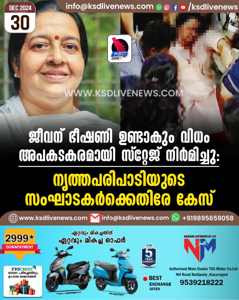 ‘ജീവന് ഭീഷണി ഉണ്ടാകും വിധം അപകടകരമായി സ്റ്റേജ് നിര്മിച്ചു’; നൃത്തപരിപാടിയുടെ സംഘാടകര്ക്കെതിരേ കേസ്