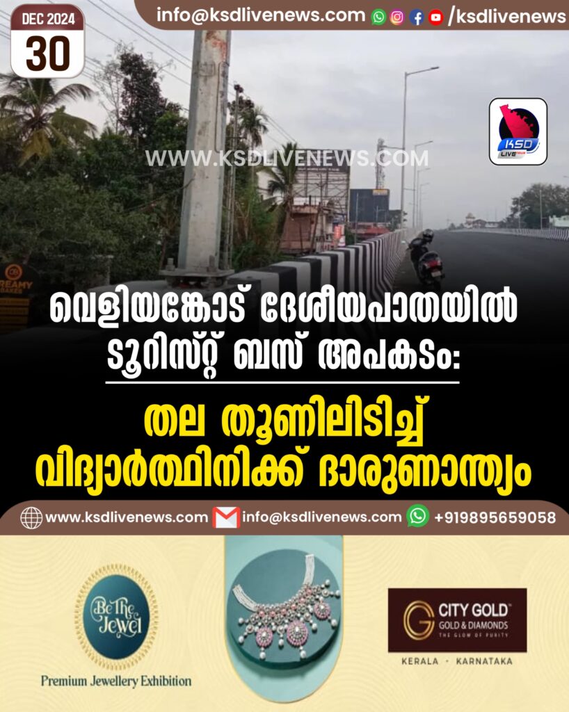 വെളിയങ്കോട് ദേശീയപാതയില്‍ ടൂറിസ്റ്റ് ബസ് അപകടം, തല തൂണിലിടിച്ച് വിദ്യാര്‍ത്ഥിനിക്ക് ദാരുണാന്ത്യം
