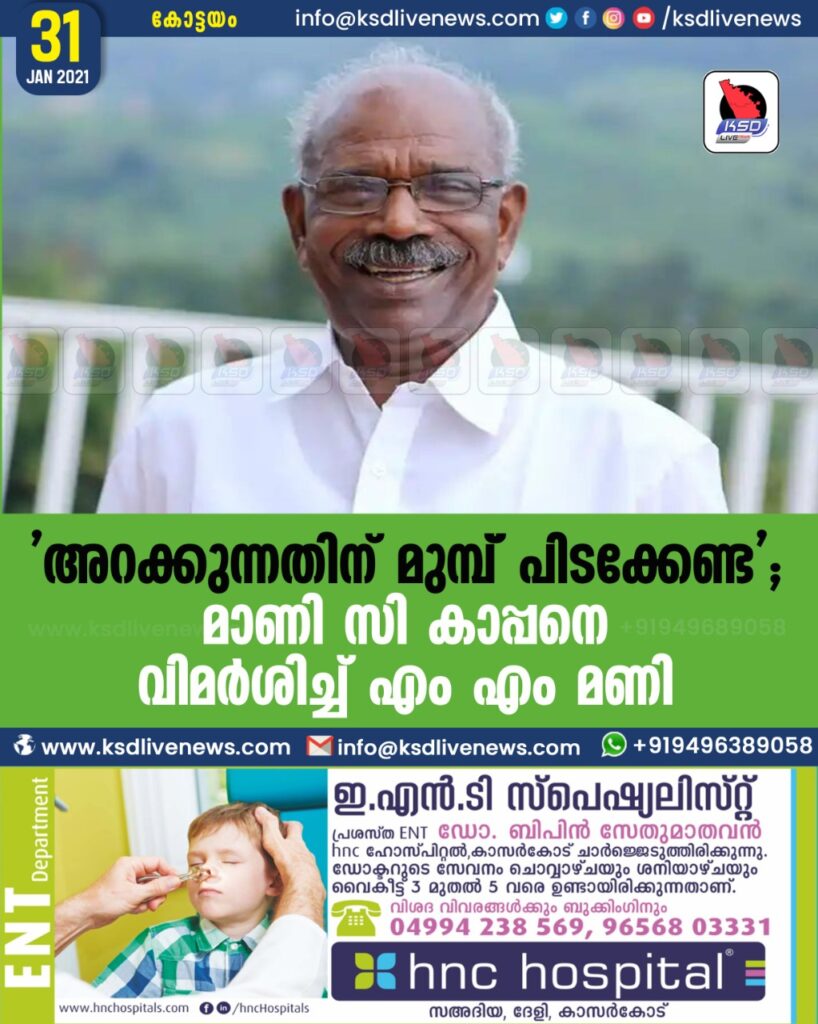‘ അറക്കുന്നതിന് മുൻപ് പിടക്കേണ്ട ‘ ; മാണി സി കാപ്പനെ വിമർശിച്ച് എം എം മണി