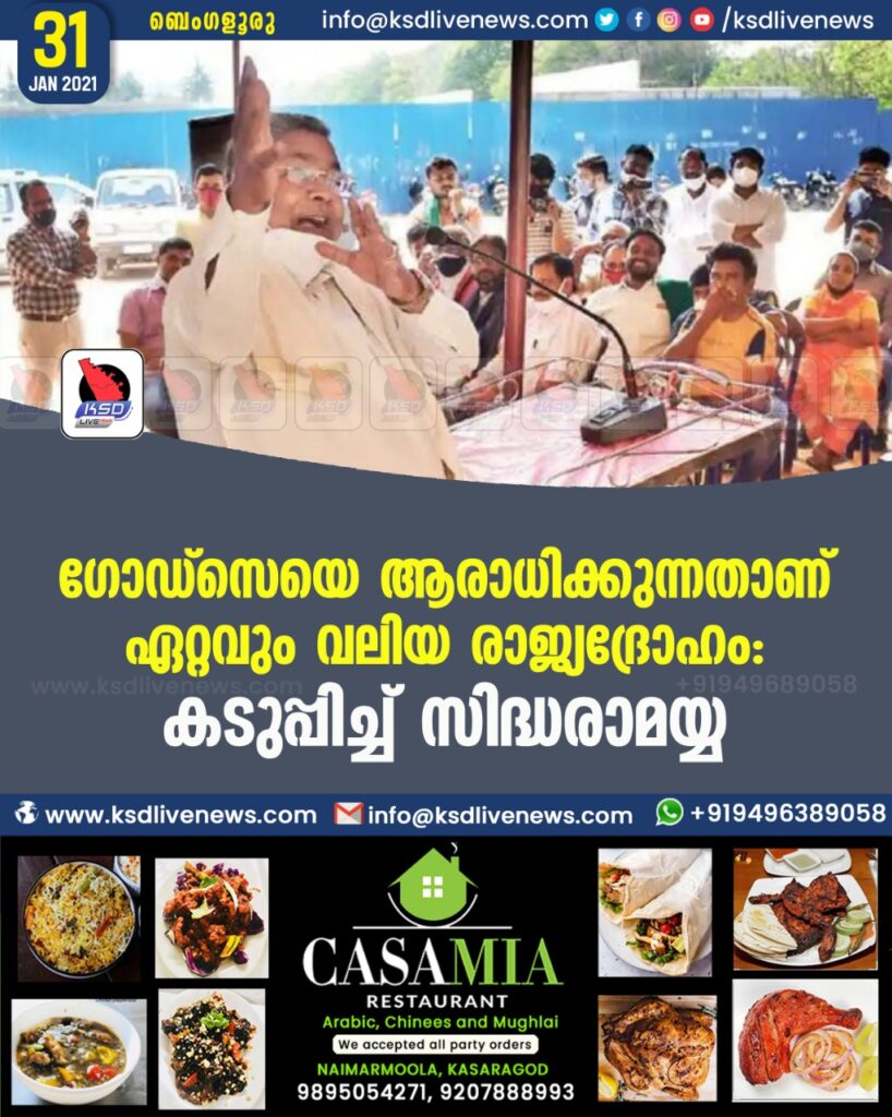 ഗോഡ്സെയെ ആരാധിക്കുന്നതാണ് ഏറ്റവും വലിയ രാജ്യദ്രോഹം ‘ : കടുപ്പിച്ച് സിദ്ധരാമയ്യ
