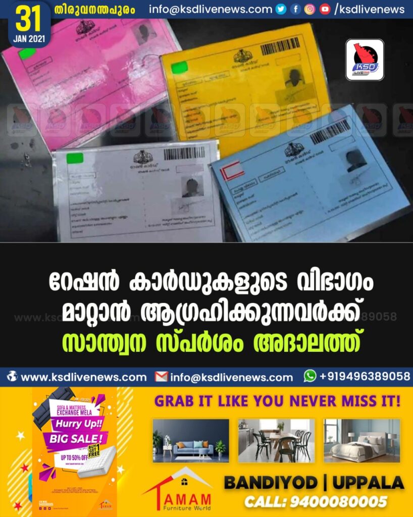 റേഷൻ കാർഡുകളുടെ വിഭാഗം മാറ്റാൻ ആഗ്രഹിക്കുന്നവർക്ക് സാന്ത്വന സ്പർശം അദാലത്ത്