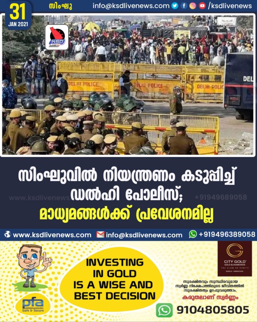 സിംഘുവിൽ നിയന്ത്രണം കടുപ്പിച്ച് ഡൽഹി പോലീസ് ; മാധ്യമങ്ങൾക്ക് പ്രവേശനമില്ല