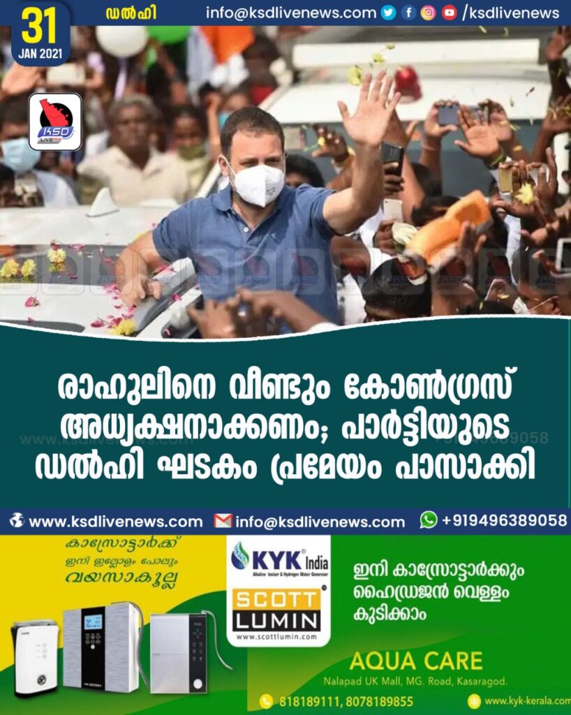 രാഹുലിനെ വീണ്ടും കോണ്ഗ്രസ് അധ്യക്ഷനാക്കണം; പാര്ട്ടിയുടെ ഡല്ഹി ഘടകം പ്രമേയം പാസാക്കി