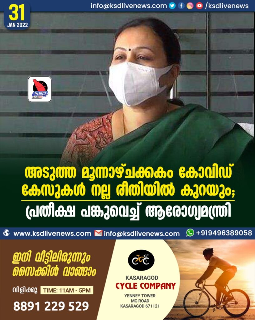 അടുത്ത മൂന്നാഴ്ചക്കകം കോവിഡ് കേസുകള് നല്ലരീതിയില് കുറയും; പ്രതീക്ഷ പങ്കുവെച്ച് ആരോഗ്യമന്ത്രി
