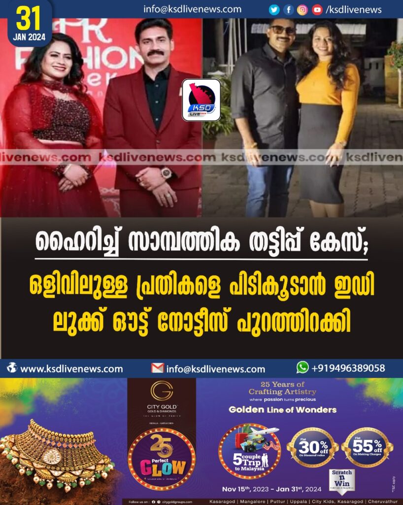 ഹൈറിച്ച് സാമ്ബത്തിക തട്ടിപ്പ് കേസ്; ഒളിവിലുള്ള പ്രതികളെ പിടികൂടാൻ ഇഡി, ലുക്ക് ഔട്ട് നോട്ടീസ് പുറത്തിറക്കി