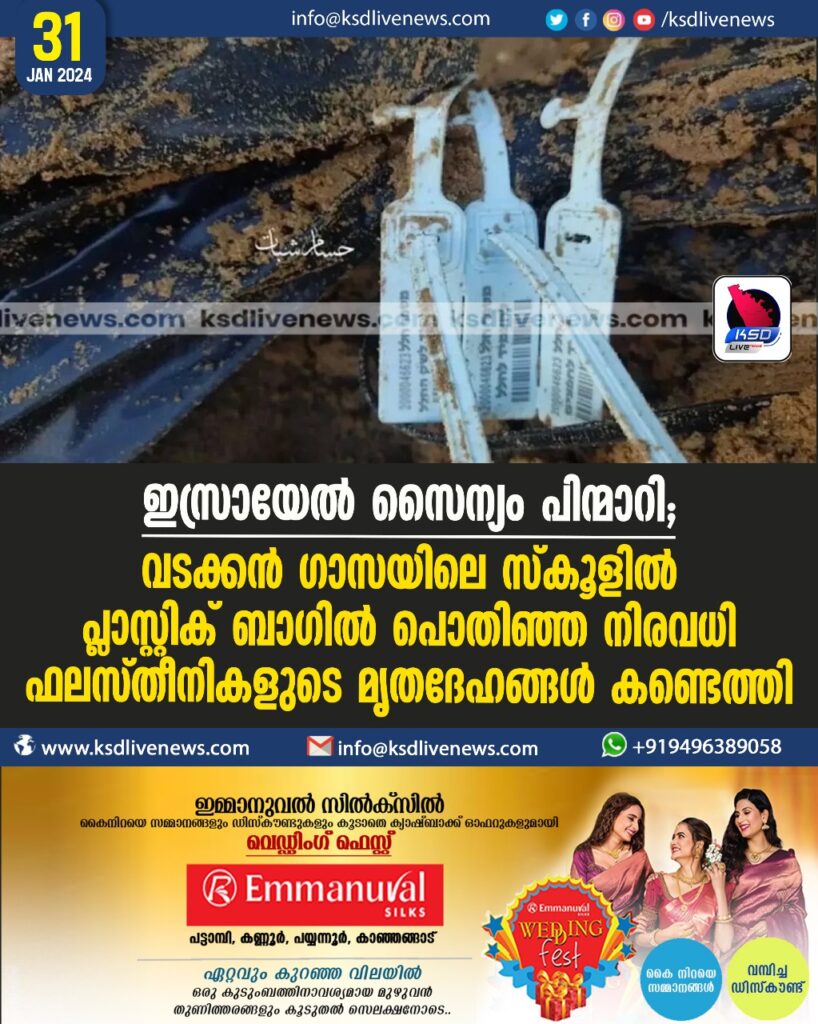 ഇസ്രായേല് സൈന്യം പിന്മാറി; വടക്കൻ ഗാസയിലെ സ്കൂളില് പ്ലാസ്റ്റിക് ബാഗില് പൊതിഞ്ഞ നിരവധി ഫലസ്തീനികളുടെ മൃതദേഹങ്ങള് കണ്ടെത്തി