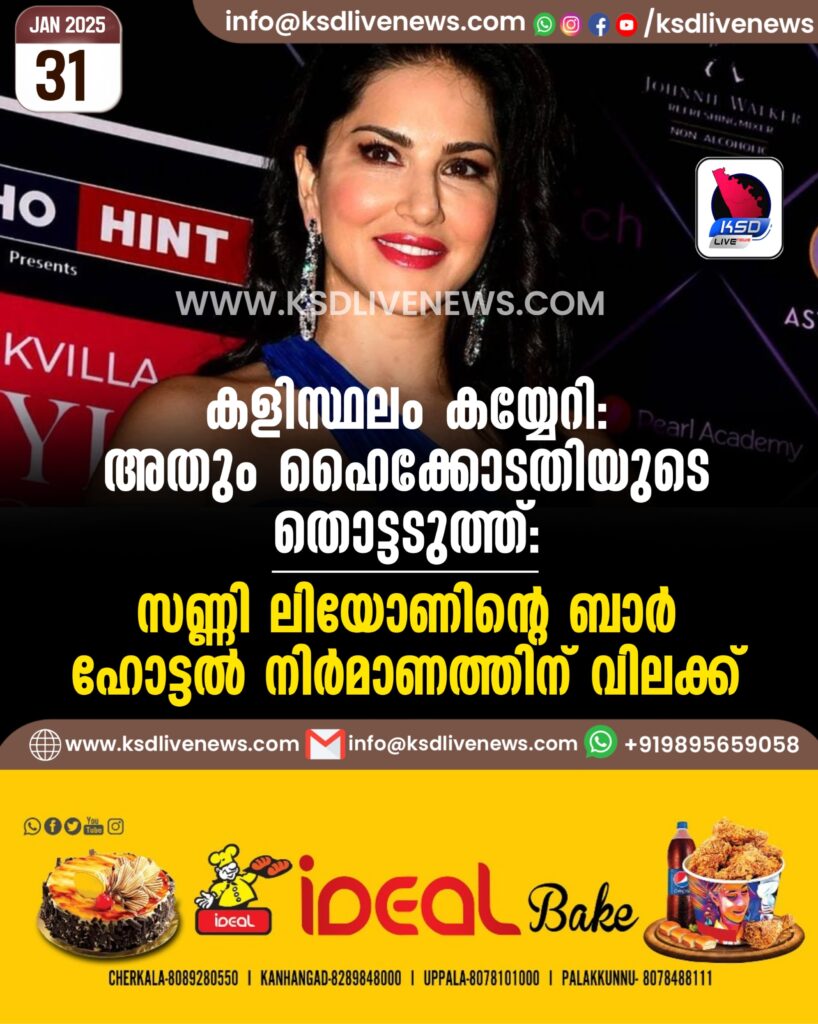 കളിസ്ഥലം കയ്യേറി, അതും ഹൈക്കോടതിയുടെ തൊട്ടടുത്ത്; സണ്ണി ലിയോണിന്റെ ബാർ ഹോട്ടൽ നിർമാണത്തിന് വിലക്ക്