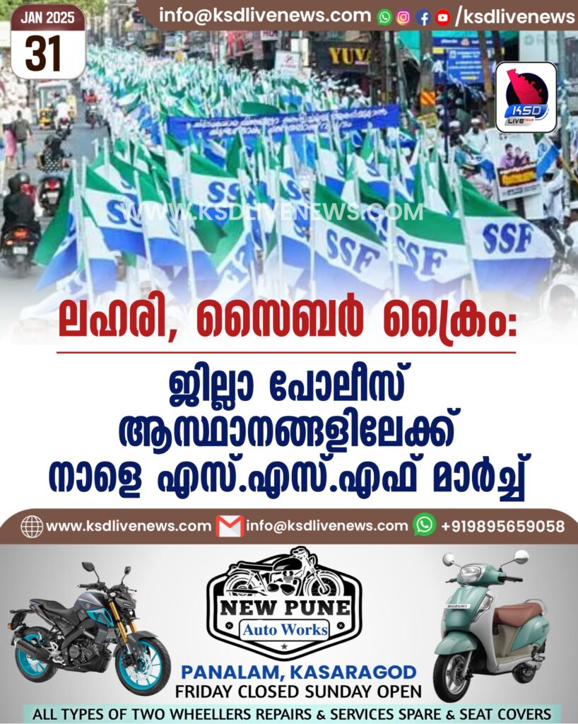 ലഹരി, സൈബര് ക്രൈം: ജില്ലാ പോലീസ് ആസ്ഥാനങ്ങളിലേക്ക് നാളെ എസ് എസ് എഫ് മാര്ച്ച്