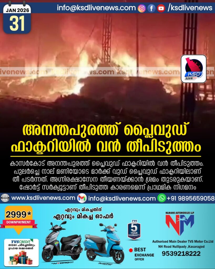 അനന്തപുരത്ത് പ്ലൈവുഡ് ഫാക്ടറിയില്‍ വൻ തീപിടുത്തം