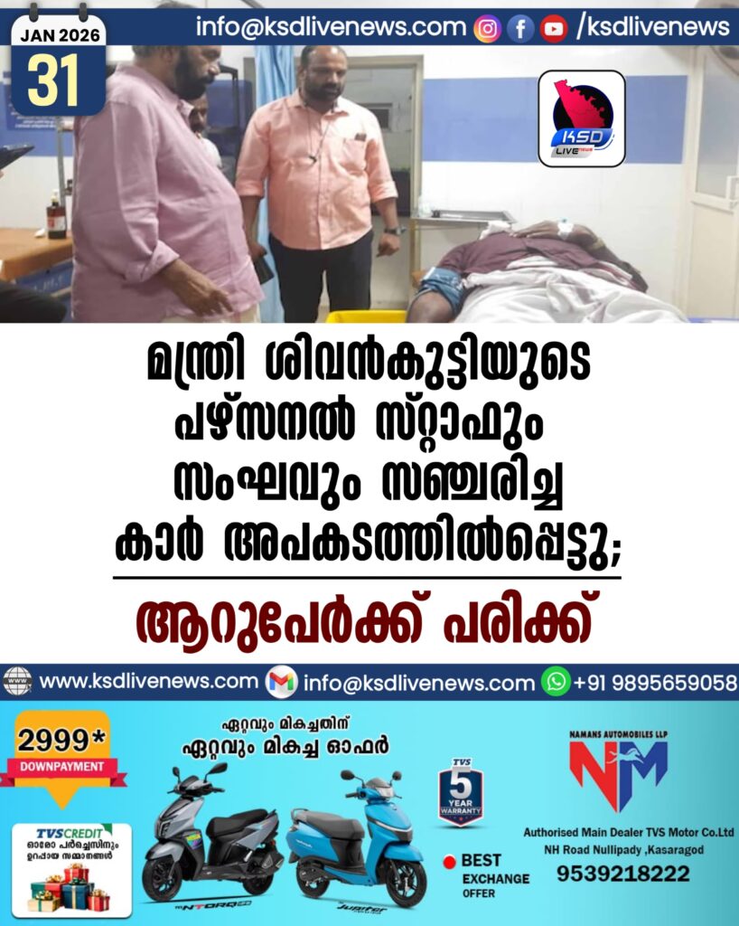 മന്ത്രി ശിവൻകുട്ടിയുടെ പഴ്സനൽ സ്റ്റാഫും സംഘവും സഞ്ചരിച്ച കാർ അപകടത്തിൽപ്പെട്ടു: ആറുപേർക്ക് പരിക്ക്