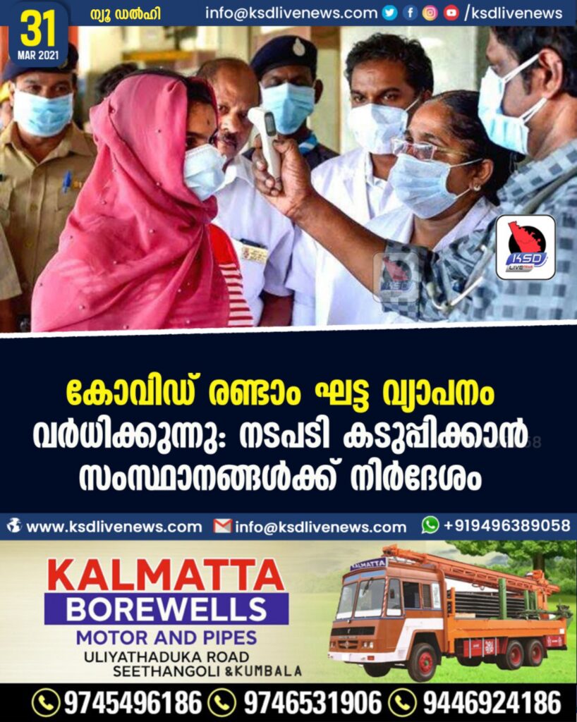 കോവിഡ് രണ്ടാംഘട്ട വ്യാപനം വർധിക്കുന്നു: നടപടി കടുപ്പിക്കാൻ സംസ്ഥാനങ്ങൾക്ക് നിർദേശം