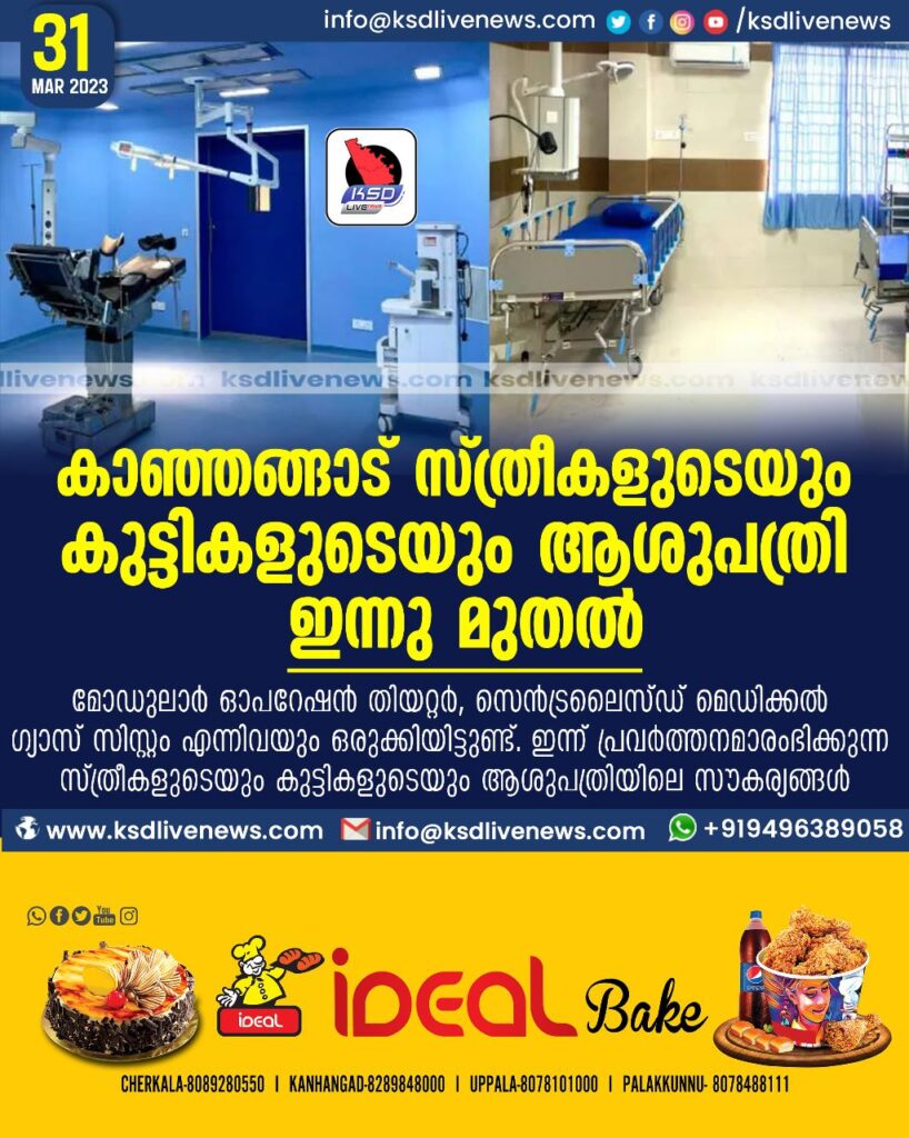 കാഞ്ഞങ്ങാട് സ്ത്രീകളുടെയും കുട്ടികളുടെയും ആശുപത്രി ഇന്നുമുതൽ
