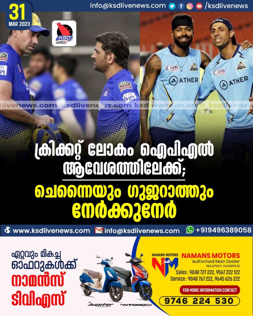 ക്രിക്കറ്റ് ലോകം ഐപിഎല് ആവേശത്തിലേക്ക്; ചെന്നൈയും ഗുജറാത്തും നേര്ക്കുനേര്