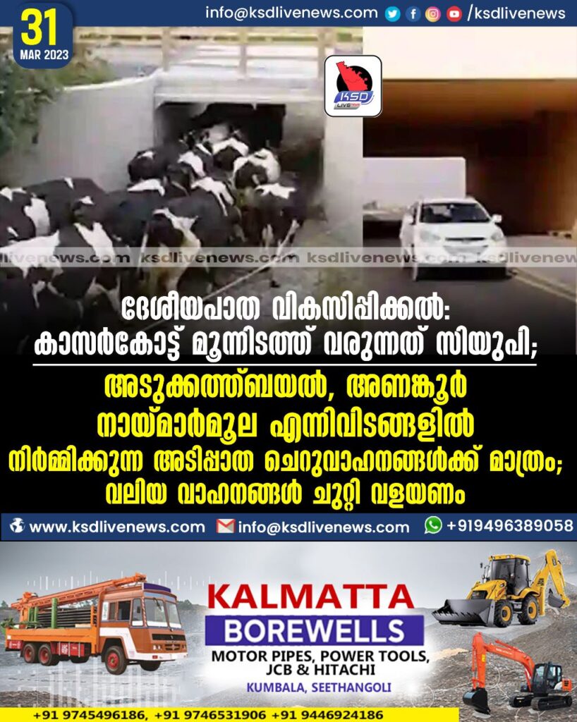 ദേശീയപാത വികസിപ്പിക്കൽ: കാസര്‍കോട്ട് മൂന്നിടത്ത് വരുന്നത് സിയുപി; അടുക്കത്ത്ബയല്‍, അണങ്കൂര്‍, നായ്മാര്‍മൂല എന്നിവിടങ്ങളില്‍ നിര്‍മ്മിക്കുന്ന അടിപ്പാത ചെറുവാഹനങ്ങള്‍ക്ക് മാത്രം; വലിയ വാഹനങ്ങൾ ചുറ്റി വളയണം