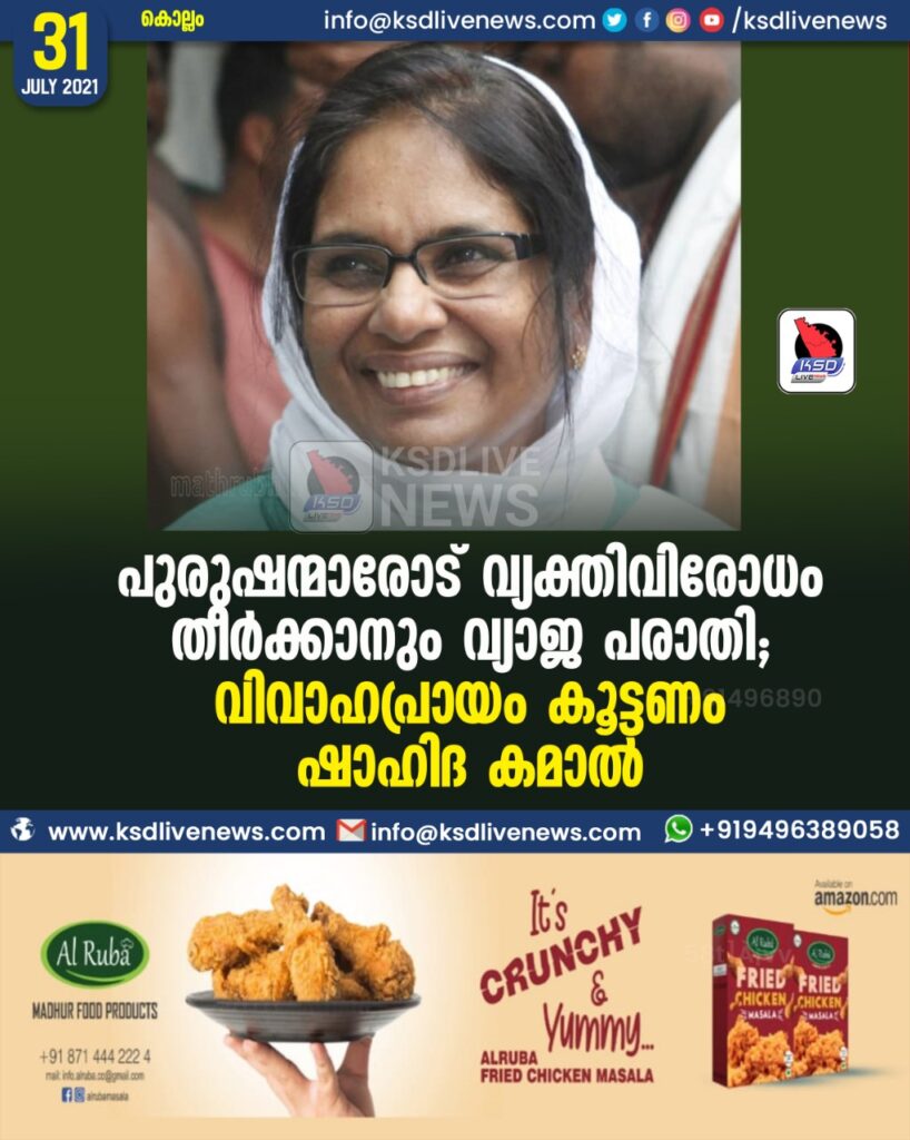 പുരുഷന്മാരോട് വ്യക്തിവിരോധം തീര്‍ക്കാനും വ്യാജ പരാതി, വിവാഹപ്രായം കൂട്ടണം-ഷാഹിദ കമാല്‍