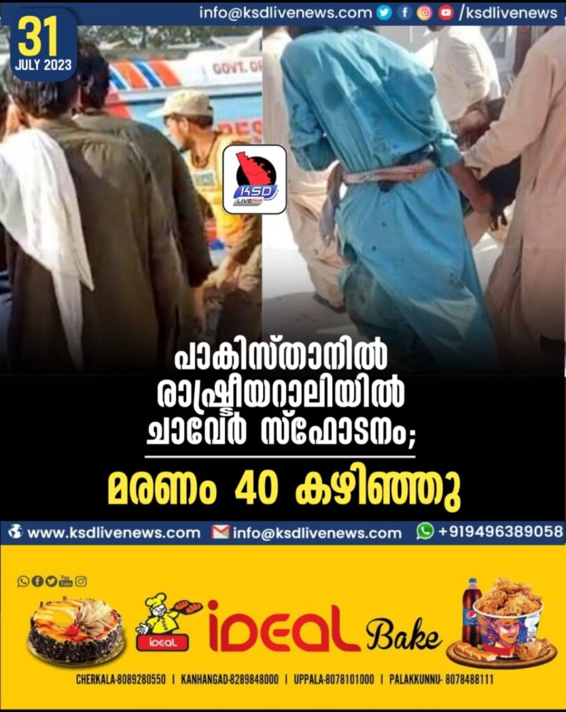 പാകിസ്താനിൽ രാഷ്ട്രീയറാലിയിൽ ചാവേർ സ്ഫോടനം; 40 മരണം കഴിഞ്ഞു
