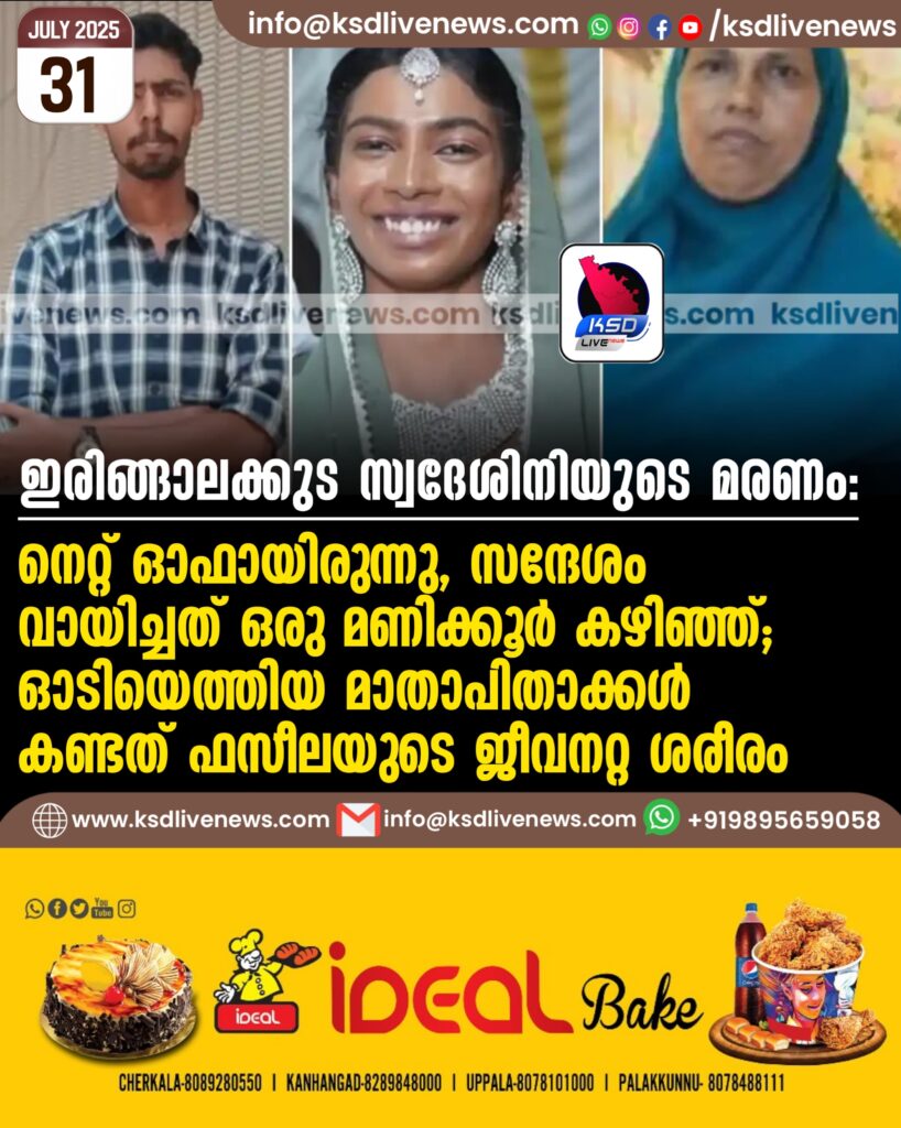നെറ്റ് ഓഫായിരുന്നു, സന്ദേശം വായിച്ചത് ഒരു മണിക്കൂര് കഴിഞ്ഞ്; ഓടിയെത്തിയ മാതാപിതാക്കള് കണ്ടത് ഫസീലയുടെ ജീവനറ്റ ശരീരം