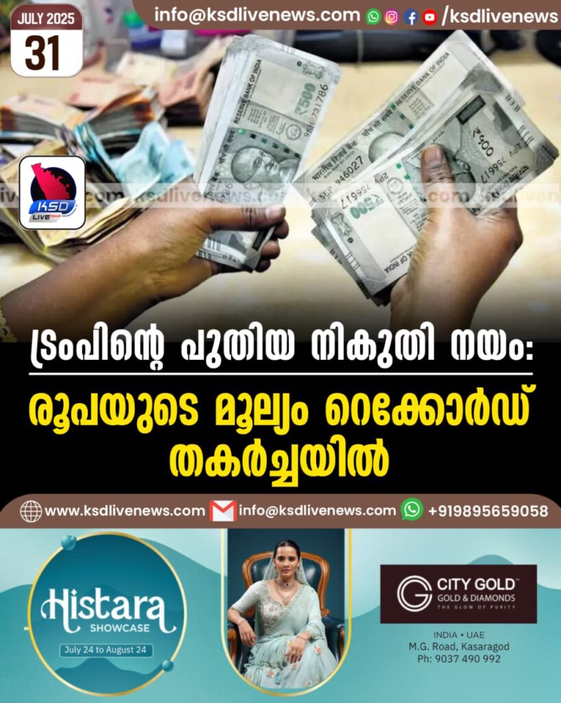 ട്രംപിന്റെ പുതിയ നികുതി നയം: രൂപയുടെ മൂല്യം റെക്കോര്ഡ് തകര്ച്ചയില്