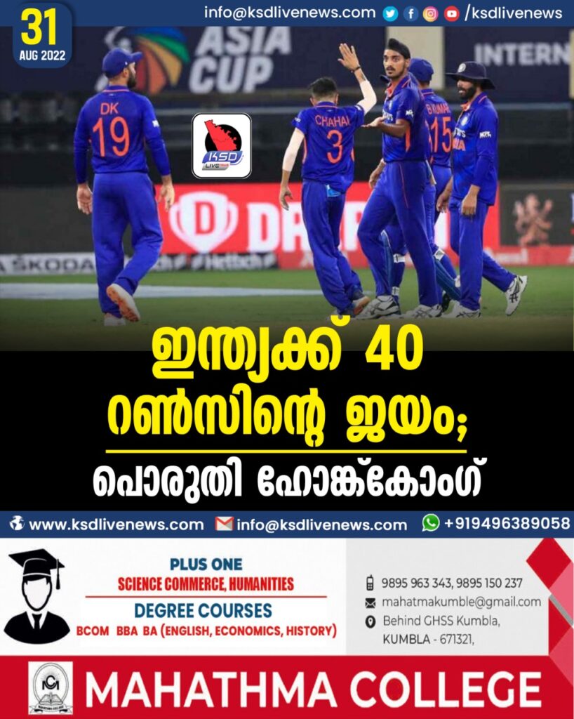 ഇന്ത്യക്ക് 40 റണ്സിന്റെ ജയം; പൊരുതി ഹോങ്ക്കോംഗ്