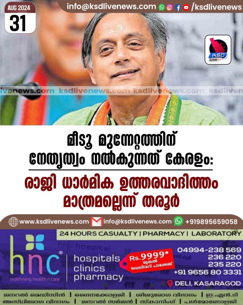 മീടൂ മുന്നേറ്റത്തിന് നേതൃത്വം നൽകുന്നത് കേരളം’: രാജി ധാർമിക ഉത്തരവാദിത്തം മാത്രമല്ലെന്ന് തരൂർ