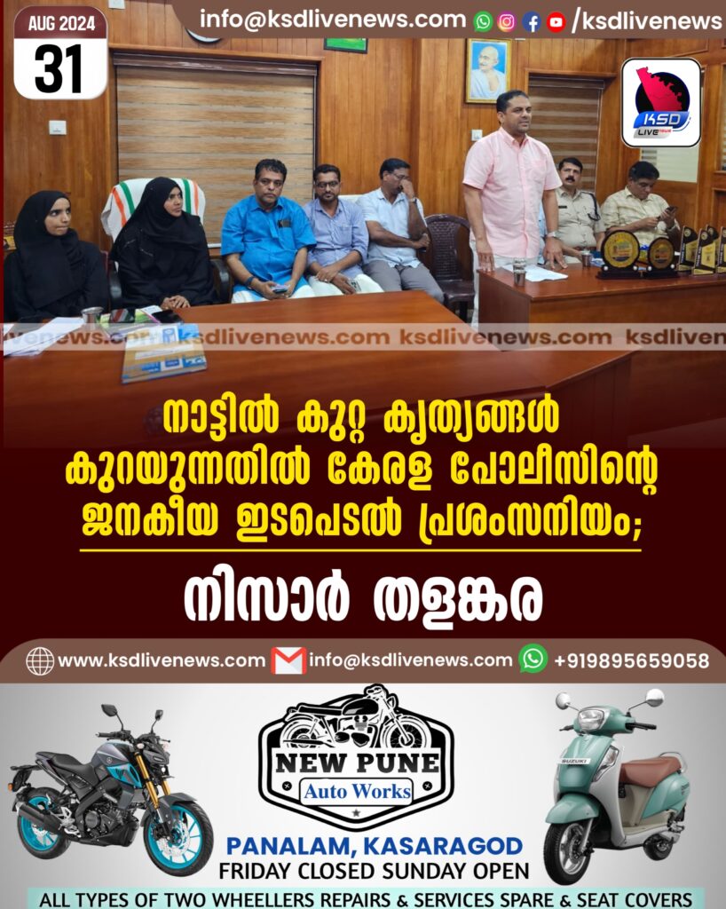 നാട്ടിൽ കുറ്റ കൃത്യങ്ങൾ കുറയുന്നതിൽ കേരള പോലീസിന്റെ ജനകീയ ഇടപെടൽ പ്രശംസനിയം ; നിസാർ തളങ്കര