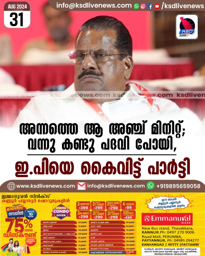 അന്നത്തെ ആ അഞ്ച് മിനിറ്റ്; വന്നു കണ്ടു പദവി പോയി, ഇ.പിയെ കൈവിട്ട് പാര്ട്ടി