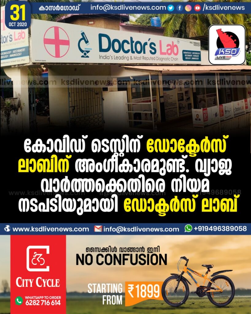 വ്യാജ വാർത്തക്കെതിരെ നിയമനടപടിയുമായി ഡോക്ടർസ് ലാബ്