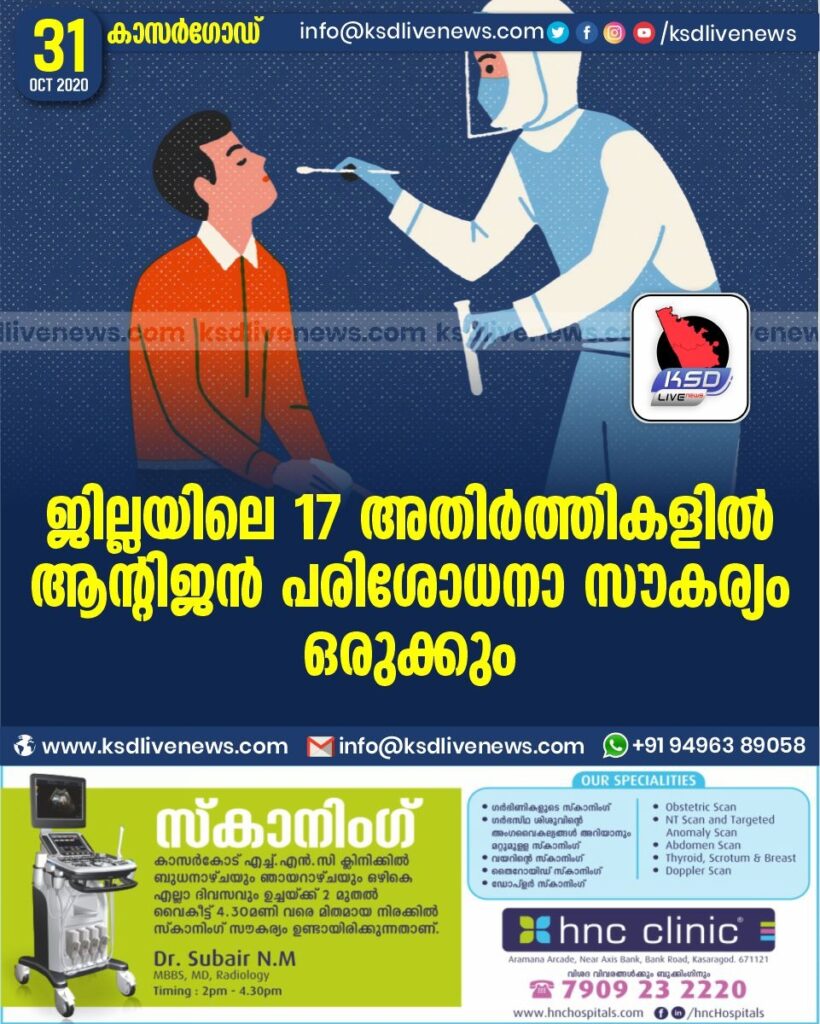 ജില്ലയിലെ 17 അതിർത്തികളിൽ ആന്റിജൻ പരിശോധനാ സൗകര്യം ഒരുക്കും