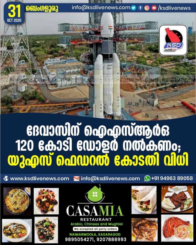 ദേവാസിന് ഐഎസ്ആർഒ 120 കോടി ഡോളർ നൽകണം ; യുഎസ് ഫെഡറൽ കോടതി വിധി .