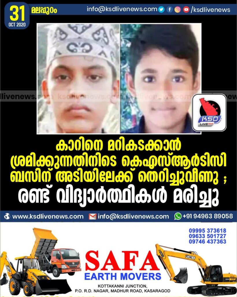 കാറിനെ മറികടക്കാൻ ശ്രമിക്കുന്നതിനിടെ കെഎസ്ആർടിസി ബസിന് അടിയിലേക്ക് തെറിച്ചുവീണു ; രണ്ട് വിദ്യാർത്ഥികൾ മരിച്ചു