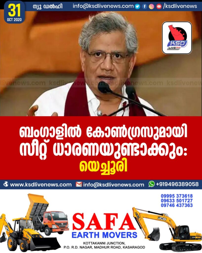 ബംഗാളിൽ കോൺഗ്രസുമായി സീറ്റ് ധാരണയുണ്ടാക്കും : യെച്ചൂരി