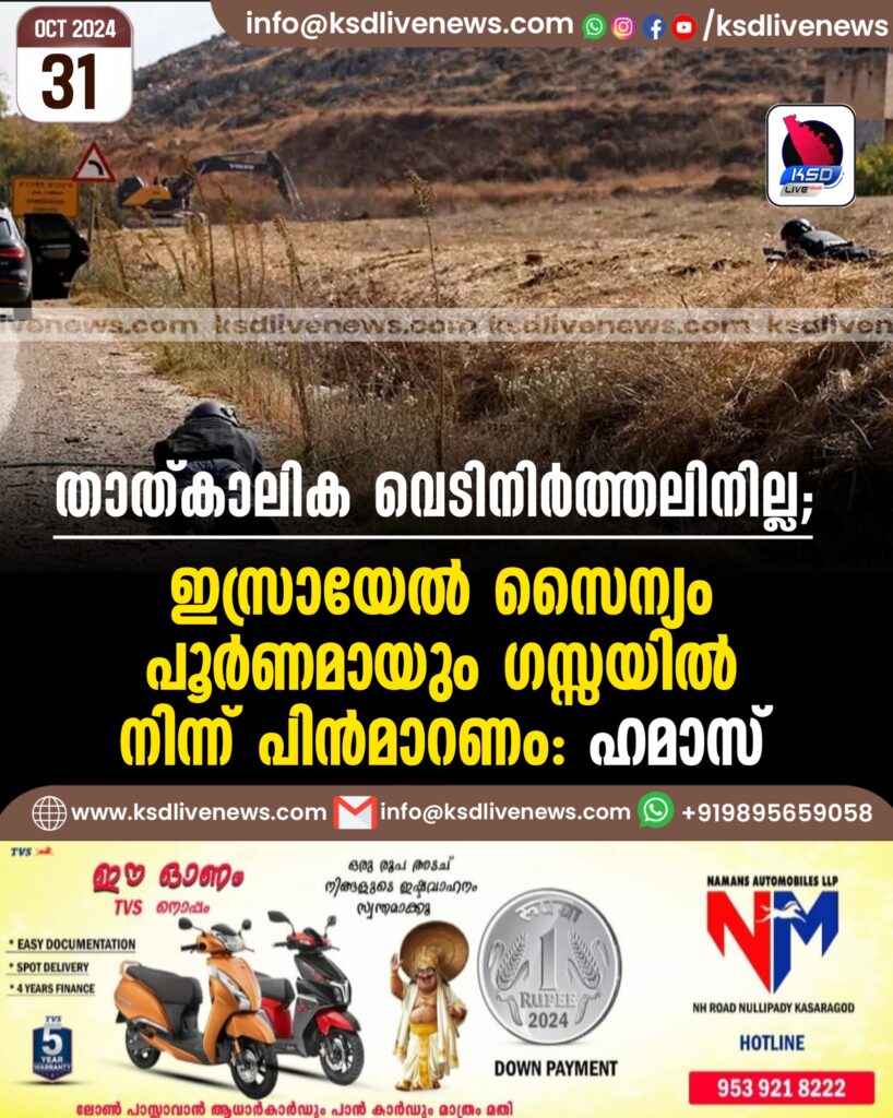 താത്കാലിക വെടിനിർത്തലിനില്ല; ഇസ്രായേൽ സൈന്യം പൂർണമായും ഗസ്സയിൽ നിന്ന് പിൻമാറണം: ഹമാസ്