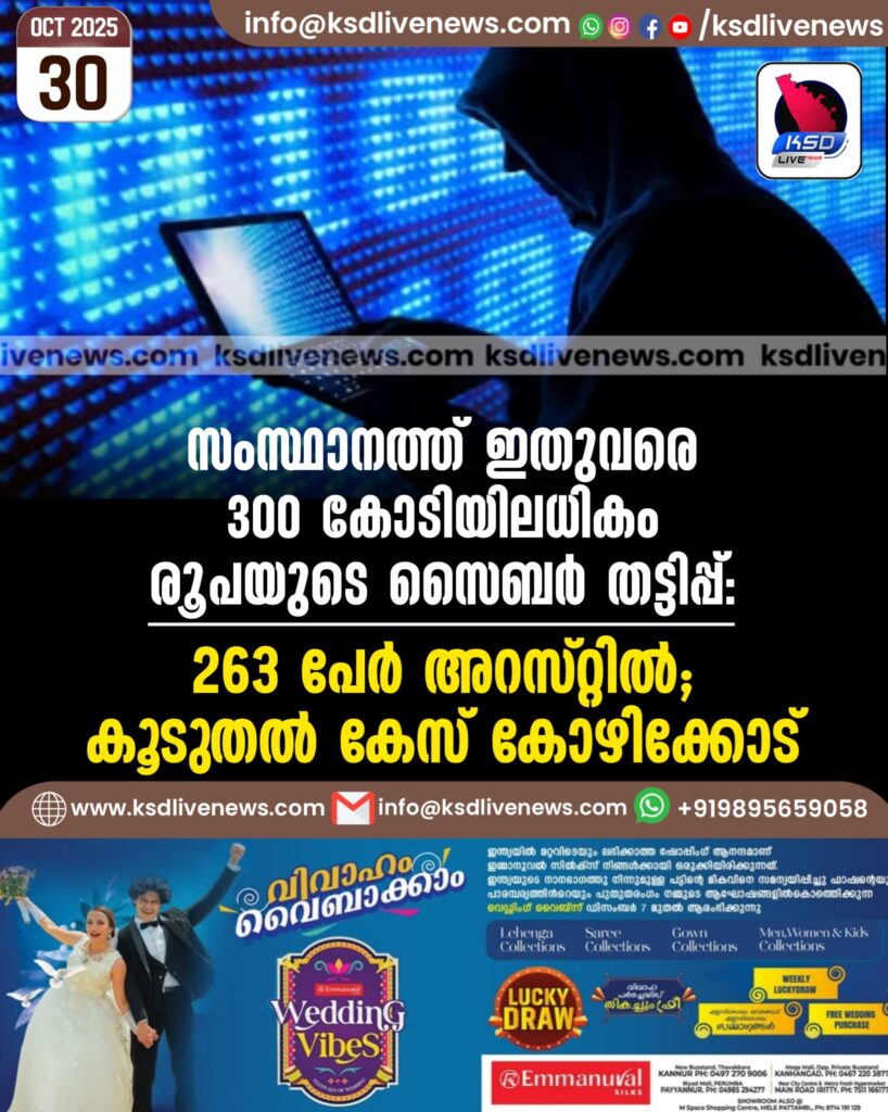സംസ്ഥാനത്ത് ഇതുവരെ 300 കോടിയിലധികം രൂപയുടെ സൈബർ തട്ടിപ്പ്: 263 പേർ അറസ്റ്റില്‍; കൂടുതൽ കേസ് കോഴിക്കോട്