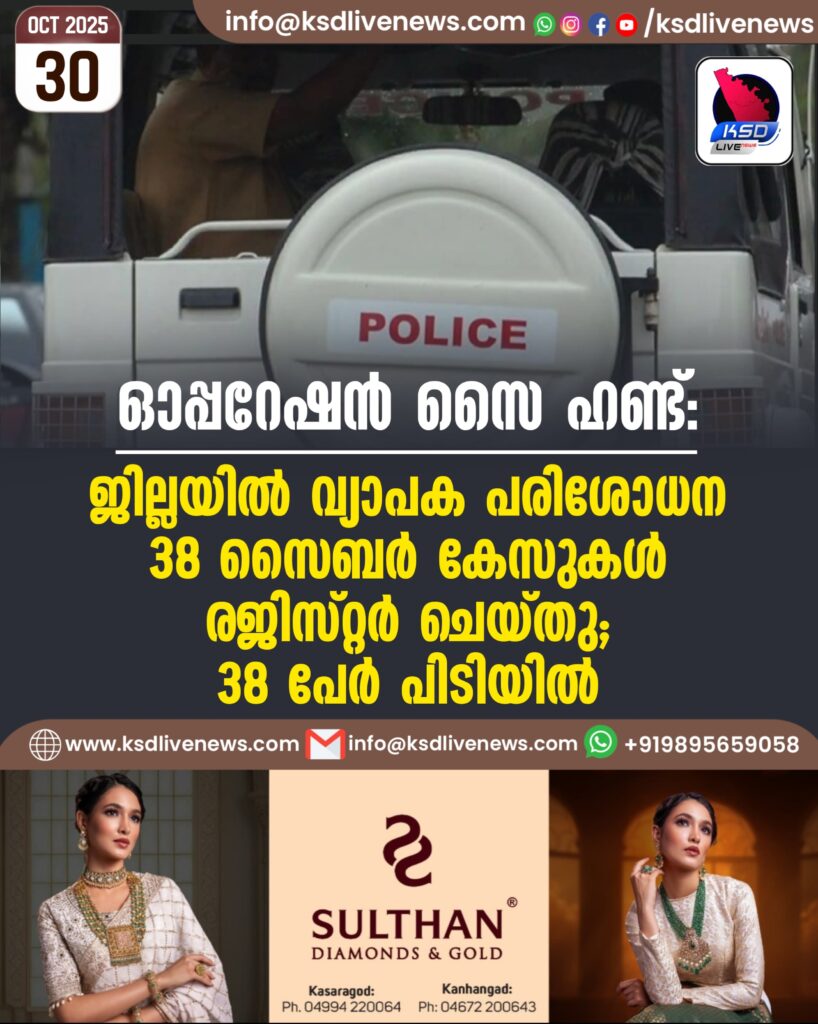 ഓപ്പറേഷൻ സൈ ഹണ്ട്: ജില്ലയിൽ വ്യാപക പരിശോധന 38 സൈബർ കേസുകൾ രജിസ്റ്റർ ചെയ്തു; 38 പേർ പിടിയിൽ