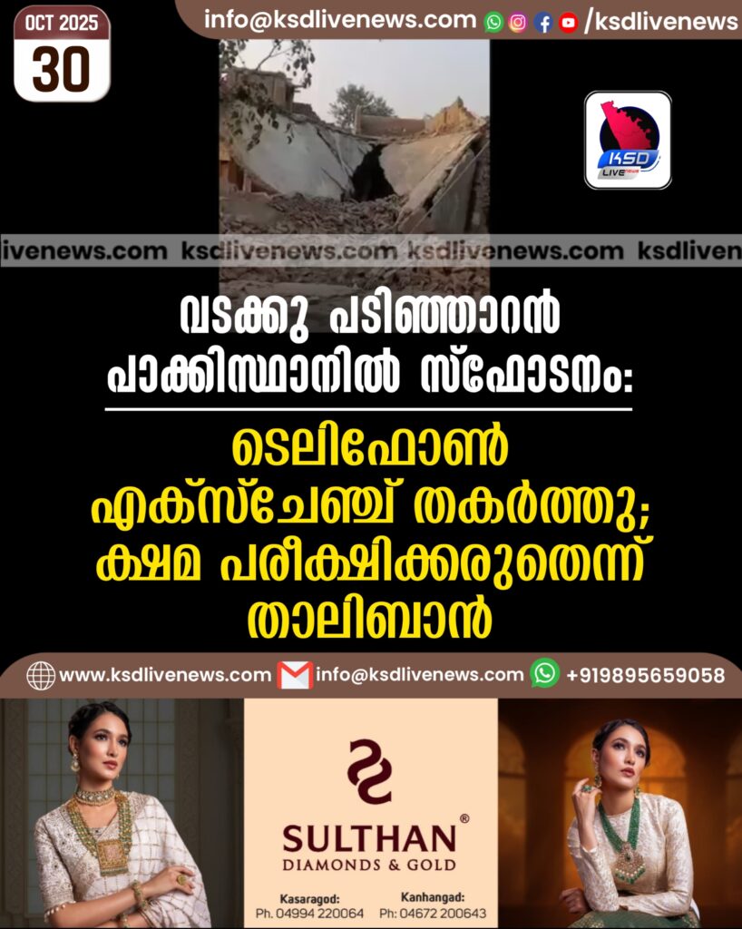 വടക്കു പടിഞ്ഞാറൻ പാക്കിസ്ഥാനിൽ സ്ഫോടനം: ടെലിഫോൺ എക്സ്ചേഞ്ച് തകർത്തു; ക്ഷമ പരീക്ഷിക്കരുതെന്ന് താലിബാൻ