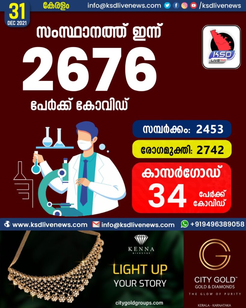സംസ്ഥാനത്ത് ഇന്ന് 2676 പേർക്ക് കോവിഡ് സ്ഥിരീകരിച്ചു. സമ്പർക്കം വഴി 2453 പേർക്കും ; ആശ്വാസമായി 2742 പേർക്ക് രോഗ മുക്തിയും ; കാസർഗോഡ് ജില്ലയിൽ 34 പേർക്ക് പുതിയ കോവിഡ് കേസുകൾ ; മരണം 11