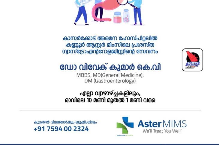 ആരോഗ്യംകാസർഗോഡ് കരൽ സംബന്ധമായ അസുഖങ്ങൾഗ്യാസട്രബിൾദഹനക്കേട്നെഞ്ചെരിച്ചിൽവയറ്റിൽ ഉണ്ടാകുന്ന നീർക്കെട്ട്, ഛർദി, വയറുവേദന,മലബന്ധം,മഞ്ഞപിത്തംപുളിച്ചു തികട്ടൽ….തുടങ്ങി ഉദര സംബന്ധമായ എല്ലാ പ്രശ്നങ്ങൾക്കും, ആസ്റ്റർ മിംസിലെ ഗാസ്ട്രോ എൻട്രോളജി വിഭാഗം ഇനി മുതൽ കാസറഗോഡ് അരമന ഹോസ്പിറ്റലിൽ എല്ലാ വ്യാഴഴ്ചകളിലുംApril 13, 2021