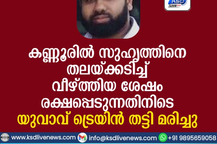 കണ്ണൂർ കണ്ണൂരില് സുഹൃത്തിനെ തലയ്ക്കടിച്ച് വീഴ്ത്തിയ ശേഷം രക്ഷപ്പെടുന്നതിനിടെ യുവാവ് ട്രെയിന് തട്ടി മരിച്ചുApril 18, 2026