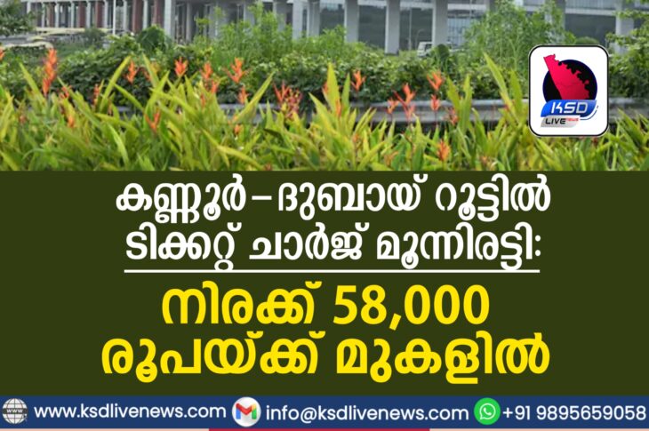 കണ്ണൂർ കണ്ണൂർ-ദുബായ് റൂട്ടിൽ ടിക്കറ്റ് ചാർജ് മൂന്നിരട്ടി; നിരക്ക് 58,000 രൂപയ്ക്ക് മുകളില്April 21, 2026