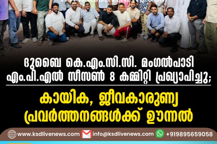 കാസർഗോഡ് ദുബൈ കെ.എം.സി.സി. മംഗൽപാടി MPL സീസൺ 8 കമ്മിറ്റി പ്രഖ്യാപിച്ചു; കായിക, ജീവകാരുണ്യ പ്രവർത്തനങ്ങൾക്ക് ഊന്നൽOctober 16, 2025