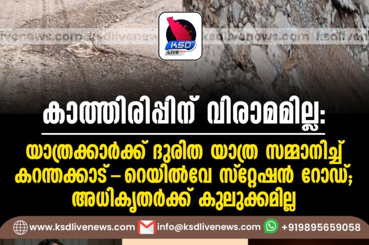 കാസർഗോഡ് കാത്തിരിപ്പിന് വിരാമമില്ല: യാത്രക്കാർക്ക് ദുരിത യാത്ര സമ്മാനിച്ച് കറന്തക്കാട്-റെയില്വേ സ്റ്റേഷന് റോഡ്; അധികൃതർക്ക് കുലുക്കമില്ലOctober 18, 2025
