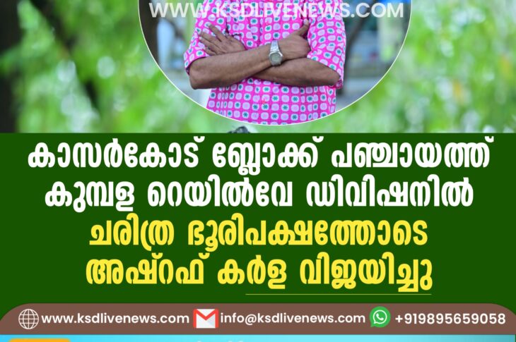 കാസർഗോഡ് കാസർകോട് ബ്ലോക്ക് പഞ്ചായത്ത് കുമ്പള റെയിൽവേ ഡിവിഷനിൽ ചരിത്ര ഭൂരിപക്ഷത്തോടെ അഷ്റഫ് കർള വിജയിച്ചുDecember 13, 2025