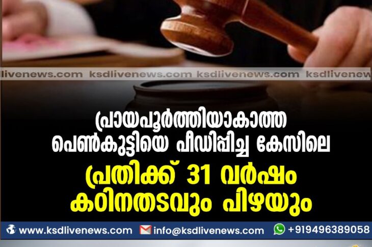 കാസർഗോഡ് പ്രായപൂര്ത്തിയാകാത്ത പെണ്കുട്ടിയെ പീഡിപ്പിച്ച കേസിലെ പ്രതിക്ക് 31 വര്ഷം കഠിനതടവും പിഴയുംMarch 8, 2023