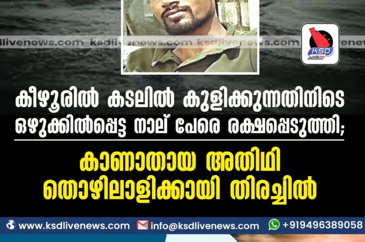 കാസർഗോഡ് കീഴൂരില് കടലില് കുളിക്കുന്നതിനിടെ ഒഴുക്കില്പ്പെട്ട നാല് പേരെ രക്ഷപ്പെടുത്തി; കാണാതായ അതിഥി തൊഴിലാളിക്കായി തിരച്ചില്March 9, 2023