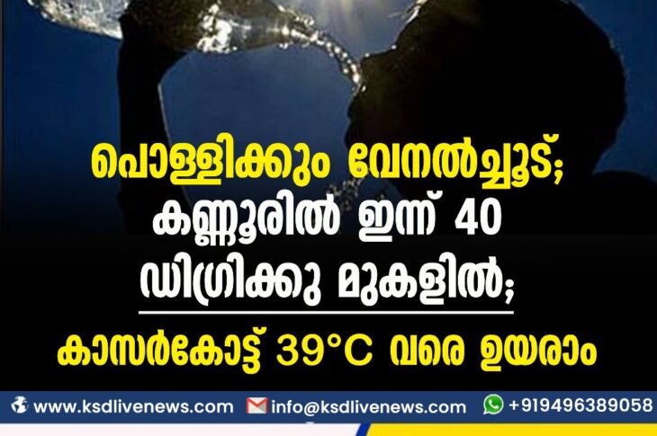 കാസർഗോഡ് പൊള്ളിക്കും വേനൽച്ചൂട്; കണ്ണൂരിൽ ഇന്ന് 40 ഡിഗ്രിക്കു മുകളില്; കാസർകോട്ട് 39°C വരെ ഉയരാംMarch 3, 2023