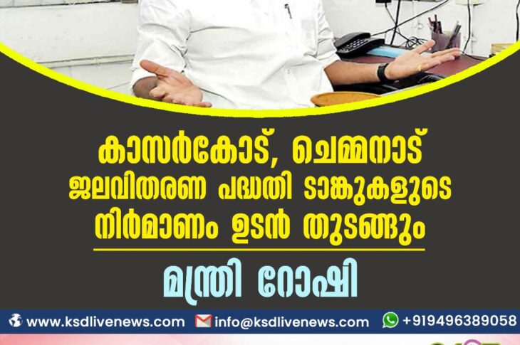 കാസർഗോഡ് കാസർകോട്, ചെമ്മനാട് ജലവിതരണ പദ്ധതി ടാങ്കുകളുടെ നിർമാണം ഉടൻ തുടങ്ങും: മന്ത്രി റോഷിMarch 4, 2023