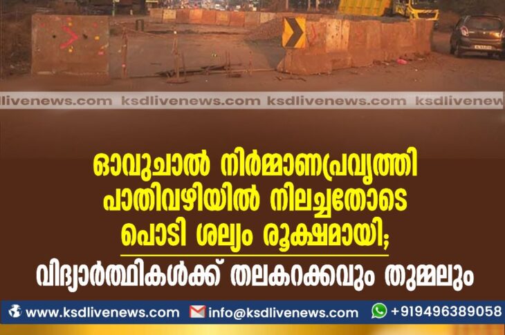 കാസർഗോഡ് ഓവുചാല് നിര്മ്മാണപ്രവൃത്തി പാതിവഴിയില് നിലച്ചതോടെ പൊടി ശല്യം രൂക്ഷമായി; വിദ്യാര്ത്ഥികള്ക്ക് തലകറക്കവും തുമ്മലുംMarch 6, 2023